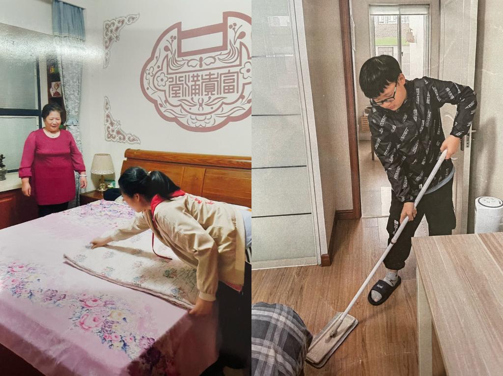 当口号化作行动之后,各年级学子在假期在家里用温情感动着父母长辈。捶背捏腿、吹干头发,整理床铺、清洗衣物,制作佳肴、共享美食,用一项项劳动孝亲敬老,这是对父母长辈养育之恩的最好回报。