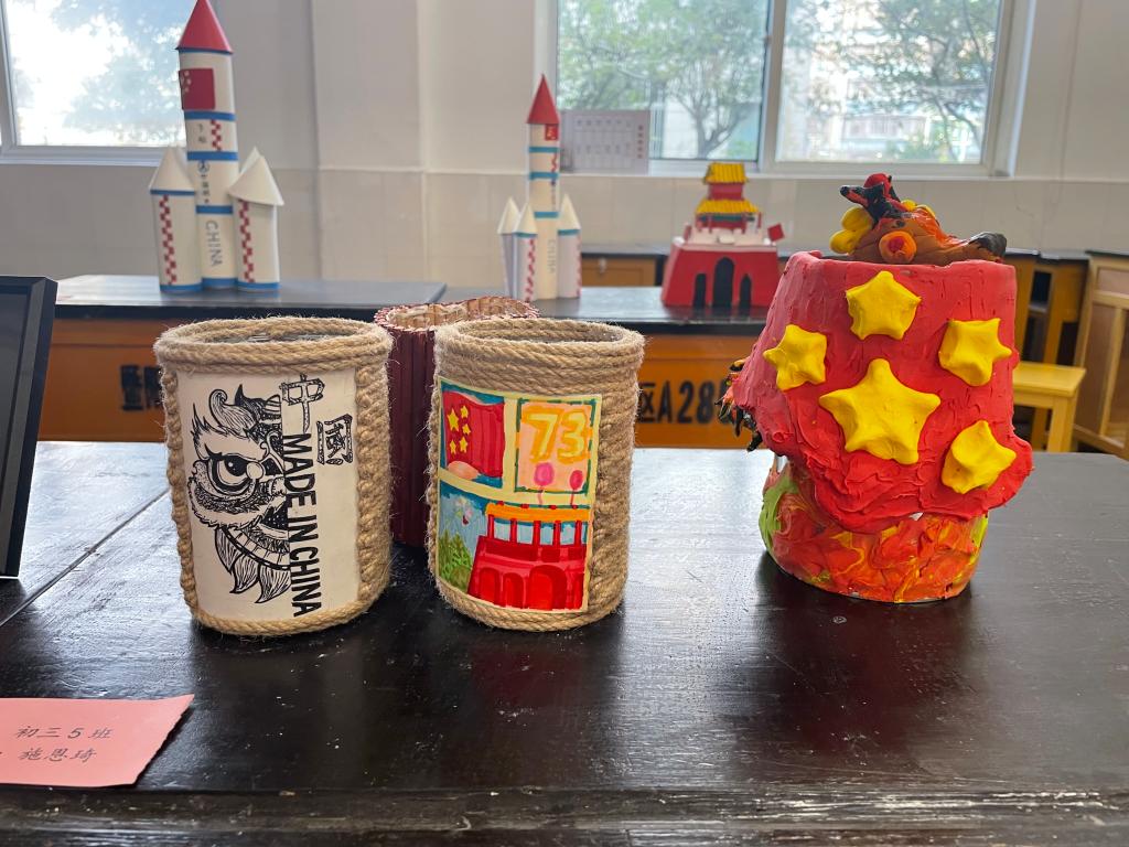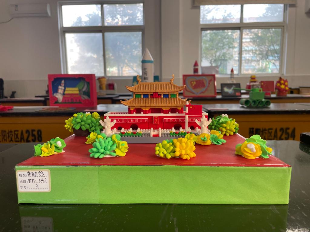 为了契合国庆氛围,每件作品都融入了爱国元素,雄伟的天安门城楼、致敬航天英雄的神舟飞船、颇具创意的南湖红船等,更添节日氛围,更显爱国情怀。假期结束后,一件件作品在学校展出,得到了师生们的一致夸赞和好评。
