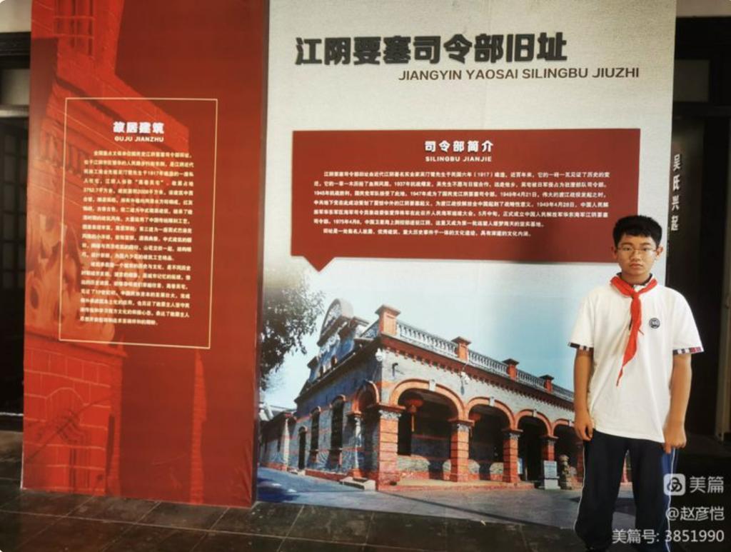 十一期间,初一(3)班追风中队的队员赵彦恺来到江阴要塞司令部旧址,追寻革命先辈的红色之风。一幅幅图片是历史的再现,让人铭记奋斗的过去,从而更好地珍惜当下和谐、安宁的生活。