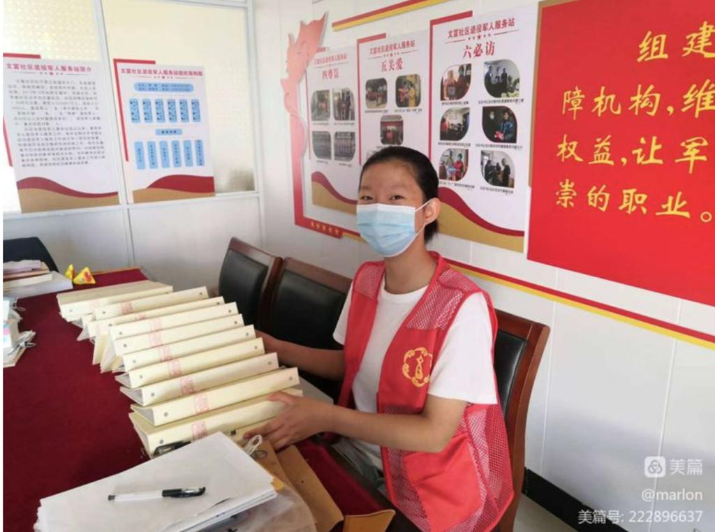 走访完退伍军人服务站,毛思予又来到社区参加义务劳动。清扫地面,擦拭玻璃,用实际行动为社区贡献自己小小的力量,她也真切地发出自己的感受:“社区,学校,家庭,许许多多的个体组成了伟大的祖国,祖国的繁荣昌盛需要我们更多的个人,脚踏实地,做好自己!”