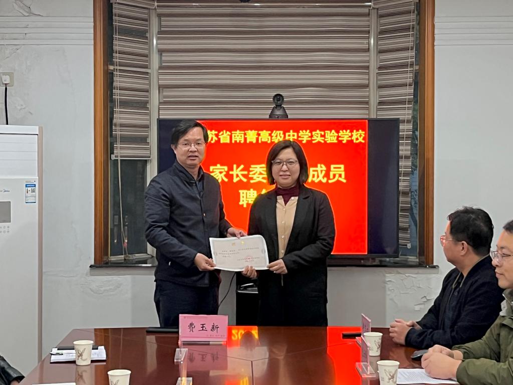 学校新一届家委会成员首先进行了自我介绍,彼此增进了解,现场气氛非常活跃。南菁实验学校费玉新校长给新一届家委会成员颁发了聘书。