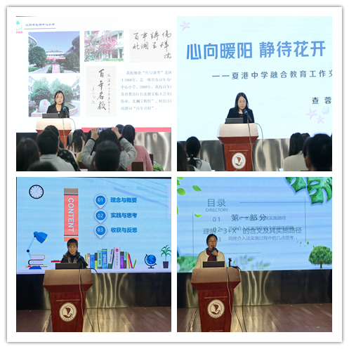 夏港中学贲可敬校长首先对参加培训的专家和教师们表示热烈欢迎。然后,他围绕“办好夏港人家门口的学校”的办学理念,介绍了夏港中学近几年来获得的成绩。最后,他认为融合教育是高质量教育体系中不可或缺的重要一环,是促进教育公平的底线要求和基本保障,并且十分愿意看到通过融合教育人的努力,能够为特殊的孩子打开一扇扇窗,让一缕缕光照亮他们的心灵,让世界充满阳光和希望。