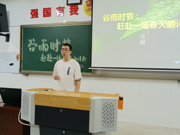 “春雨惊春清谷天,夏满芒夏暑相连。秋处露秋寒霜降,冬雪雪冬小大寒”,4月20日,正值谷雨节气,在一曲悠扬婉转的《二十四节气歌》中,由江阴中专周庄校区兰草文学社举办的世界读书日系列活动《谷雨时节,赶赴一场春天的诗会》在校区团校拉开序幕。