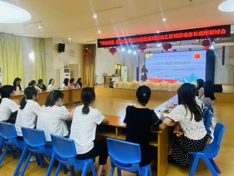 为进一步做好科学幼小衔接工作,转变教师及家长的教育观念与行为,形成幼儿园与小学协同合作的教育生态,曙光园通过邀请小学教师来园讲座,与家、园、校三方联合教研,例如:邀请小学老师、家长参观园所环境、观摩课程游戏化背景下的大班幼儿的区域活动,观摩后双方教师与家长代表一同就幼小衔接工作中存在的困惑和问题进行剖析、探讨,达成共识。做到幼儿园和小学的双向奔赴,努力形成家、园、校的合力。