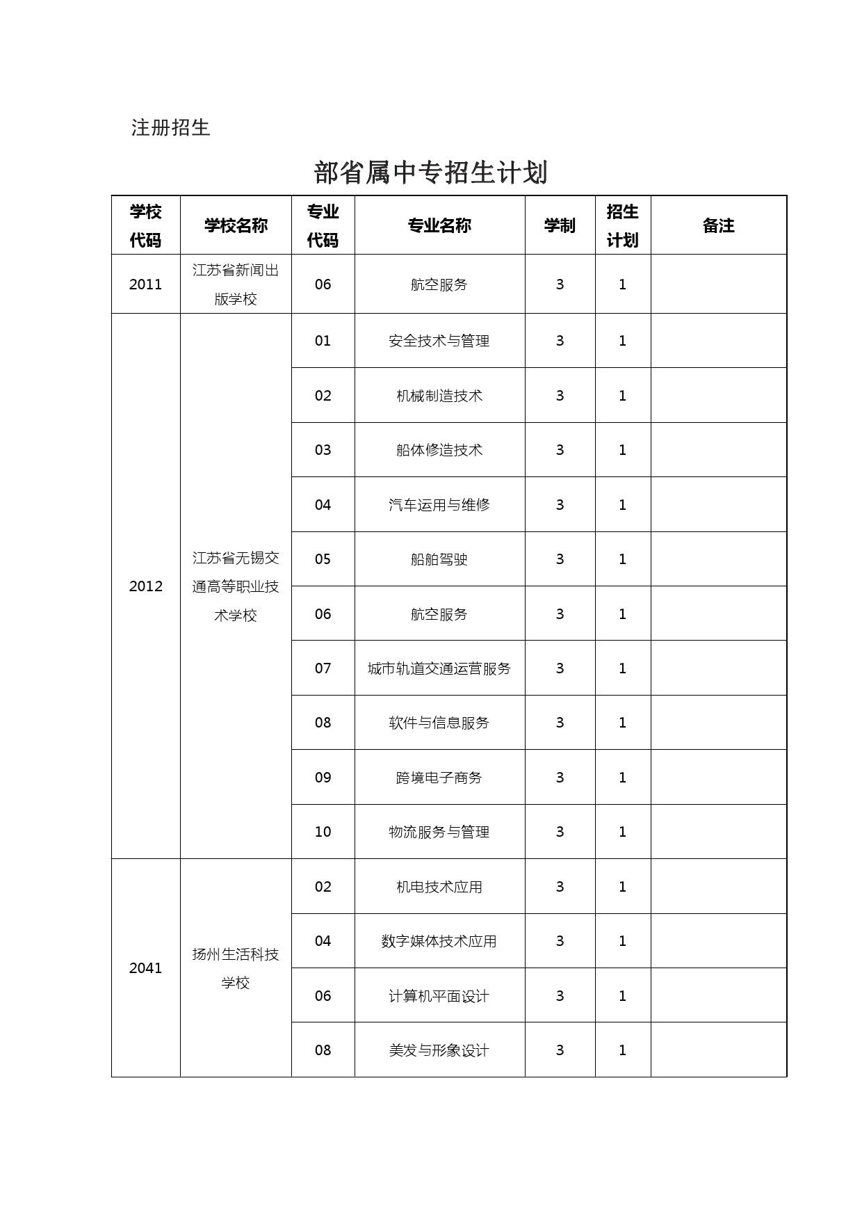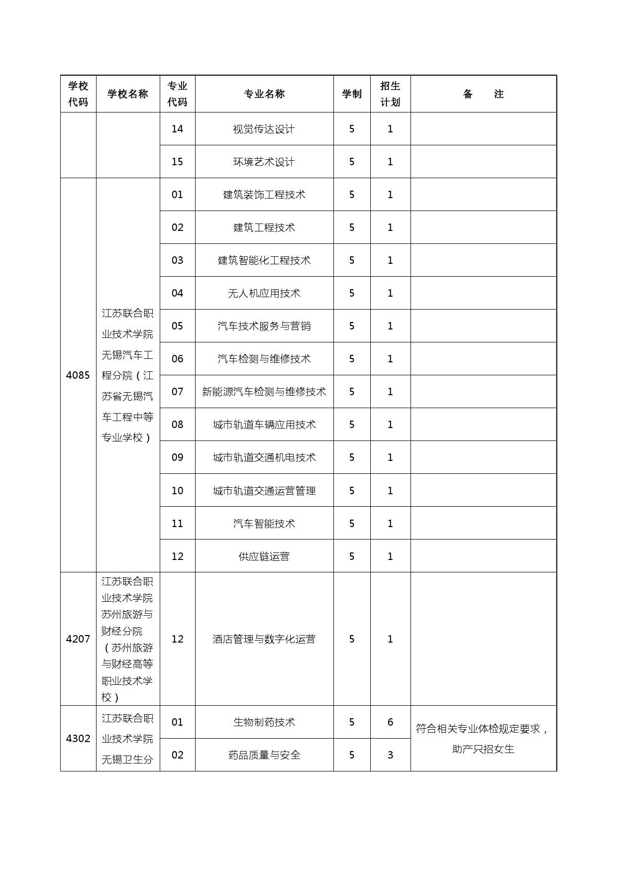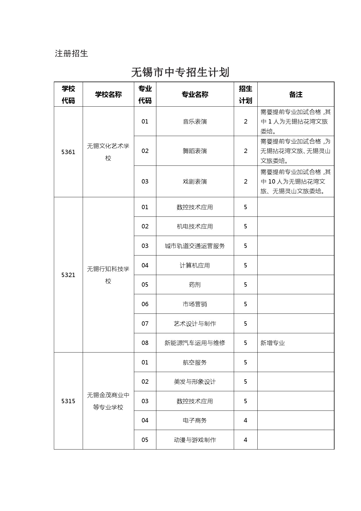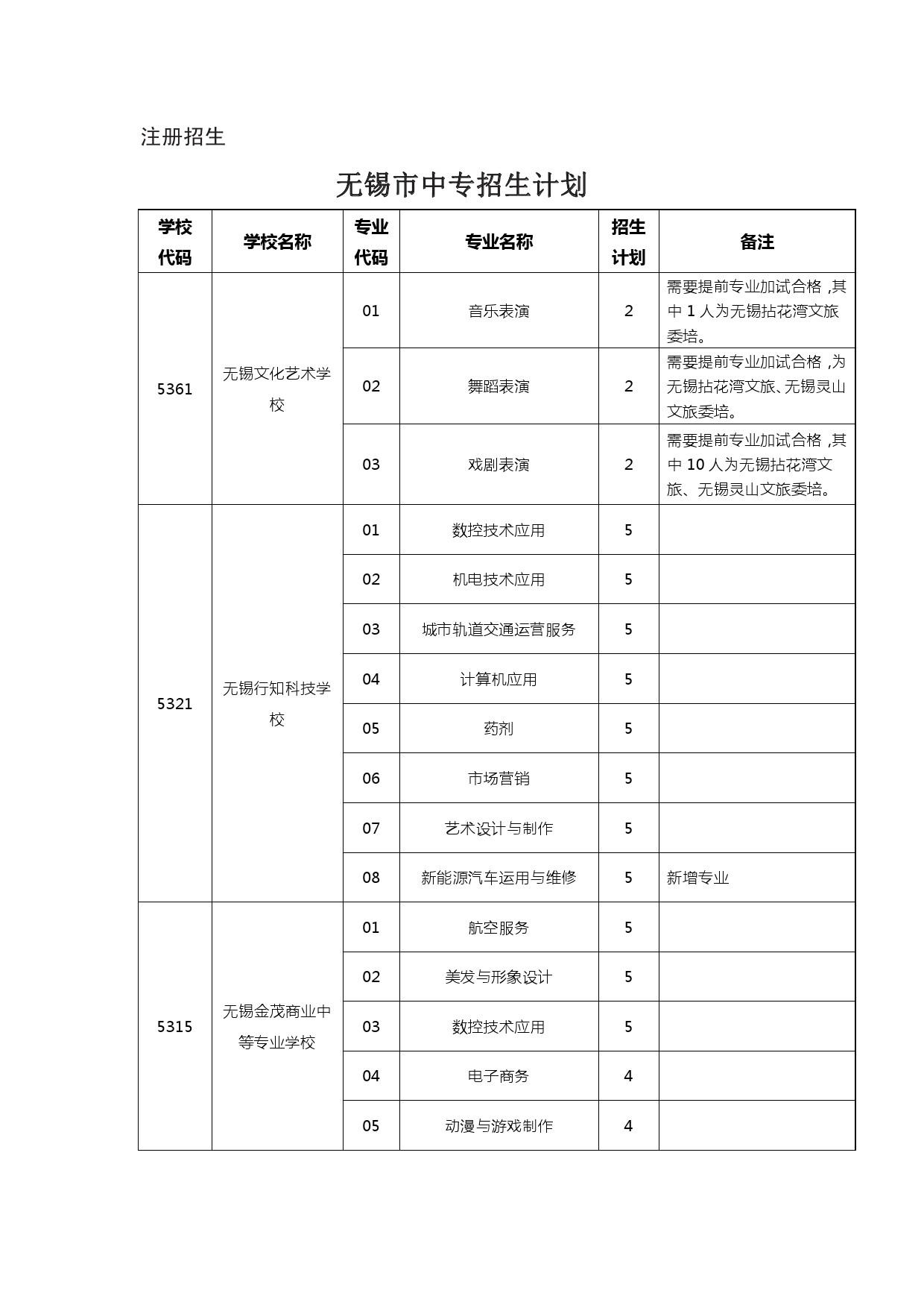 2024年五年制高职、无锡中专、部省属中专、无锡技工学校计划