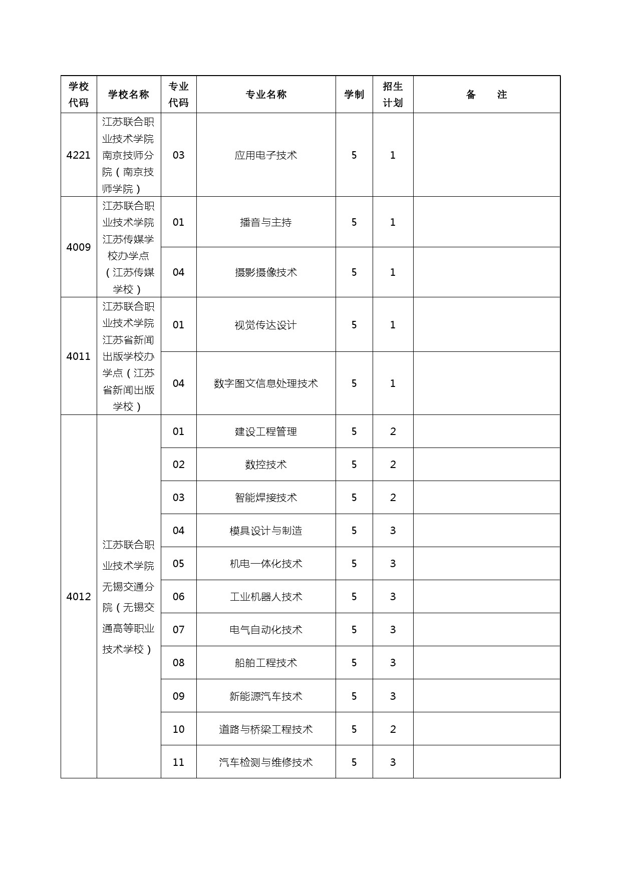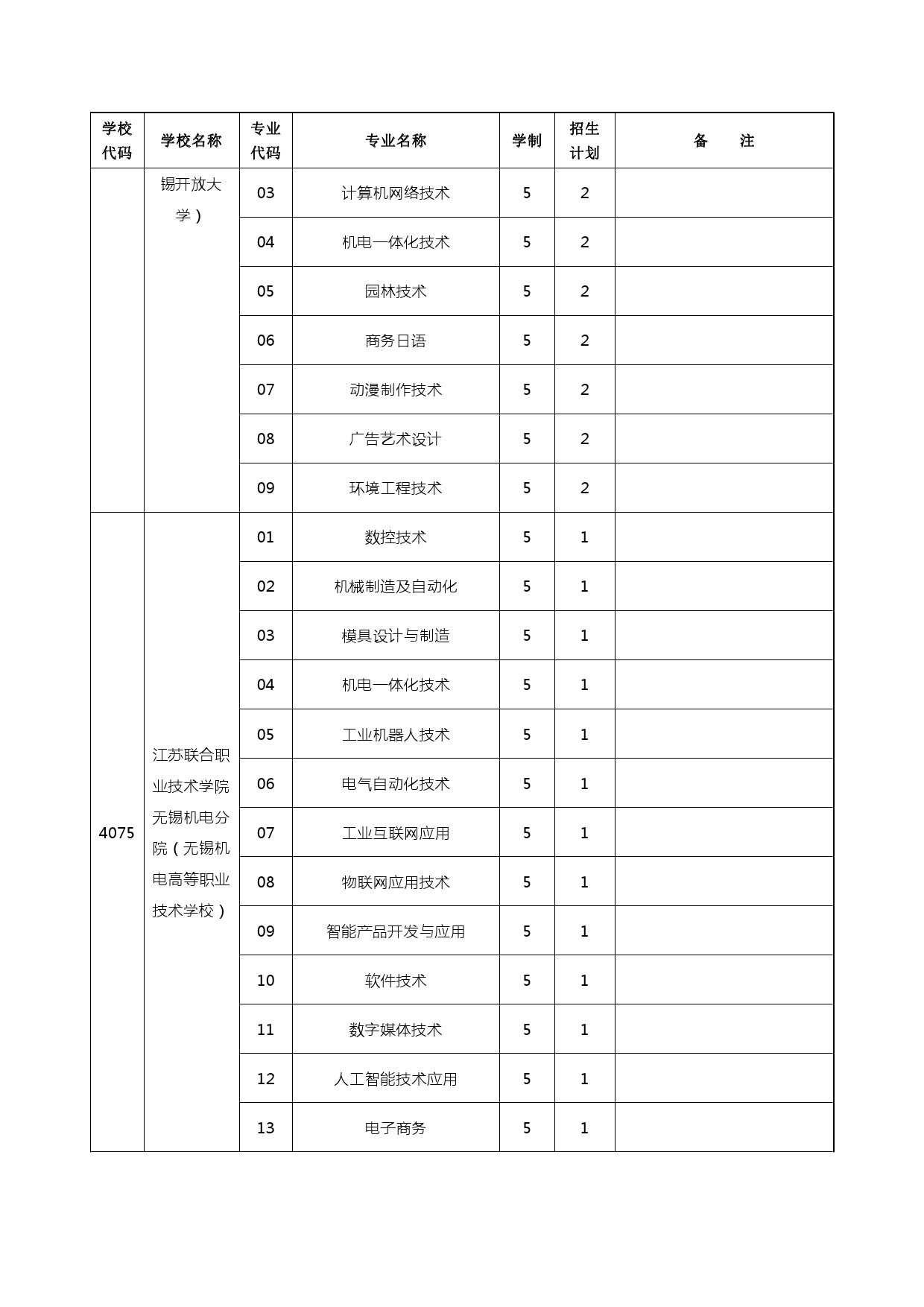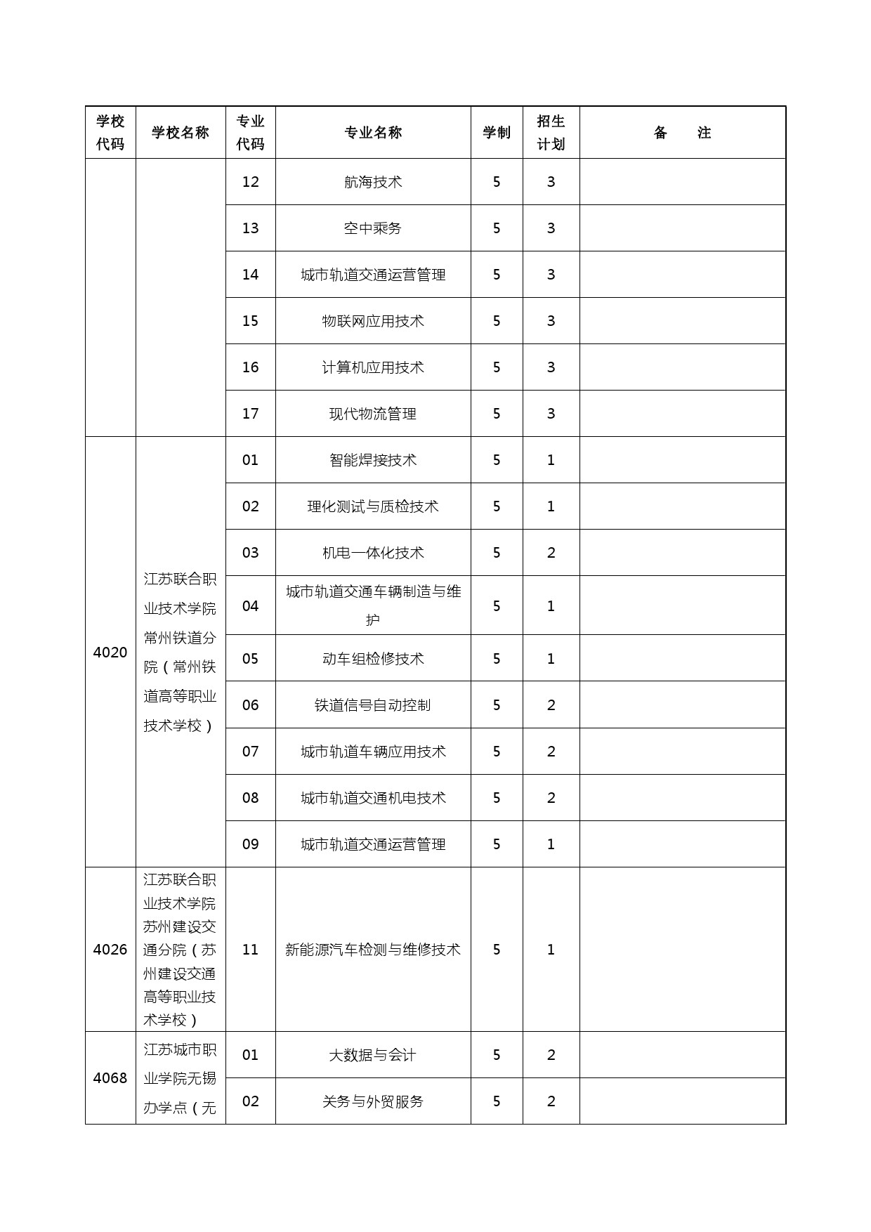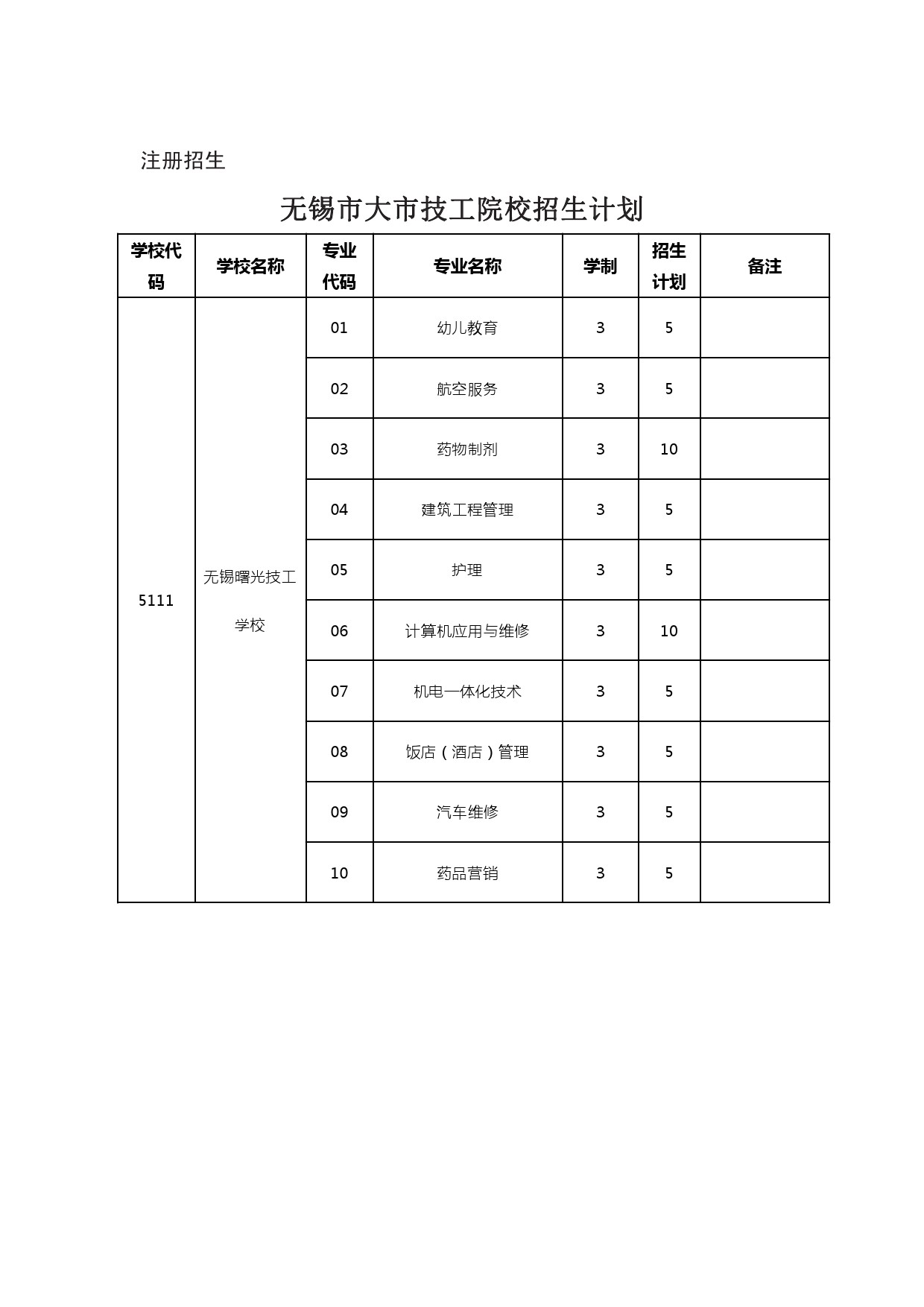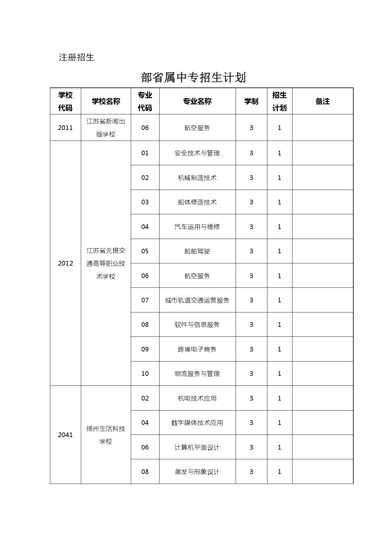 2024年五年制高职、无锡中专、部省属中专、无锡技工学校计划
