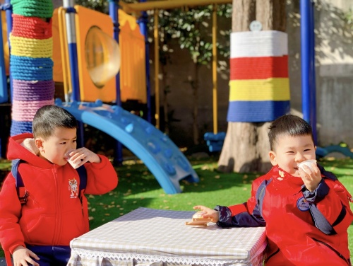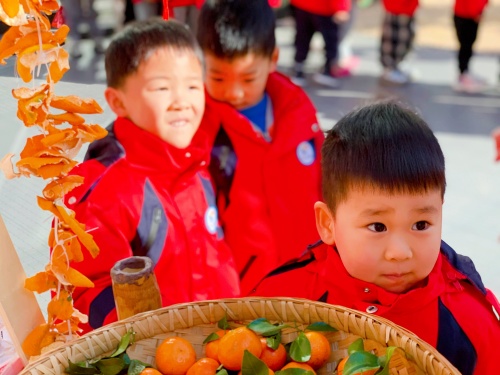 小班的萌娃们瞪大眼睛,满是新奇,小手紧紧攥着寓意满满的福袋,他们你看看我,我看看你,咧嘴笑着,手拉手围成圈,奶声奶气地唱歌,再一起美滋滋地品尝美食,溢出满满的幸福。