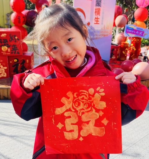 中、大班的哥哥姐姐们则身负“重任”,手握 5 个“雪花片金币”,开启购物大挑战。他们穿梭在年铺间,认真比对商品,有模有样地挑选。在你来我往中,孩子们购物礼仪牢记心间,分享、交往能力见长,同时计数、清点能力也悄然提升。
