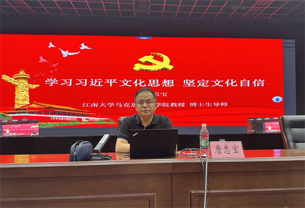江南大学马克思主义学院唐忠宝教授带来了开班第一课《学习习近平文化思想,坚定文化自信》。唐教授以“习近平新时代中国特色社会主义思想”为核心,从“两个结合”“消除偏见”“深度透视”“坚定信仰”四个维度,明确了坚定文化自信对于民族复兴、人才培养的极端重要性。在唐教授的课堂上,一个个英雄事迹生动地展现在面前,所有学员被英雄们的光辉事迹和坚毅精神所触动。讲座不仅加深了新教师们对党的认识与理解和对意识形态重要性的感悟,也让全体学员认识到了“历史虚无主义”的危害,激发了大家爱国爱党的热情与信念。