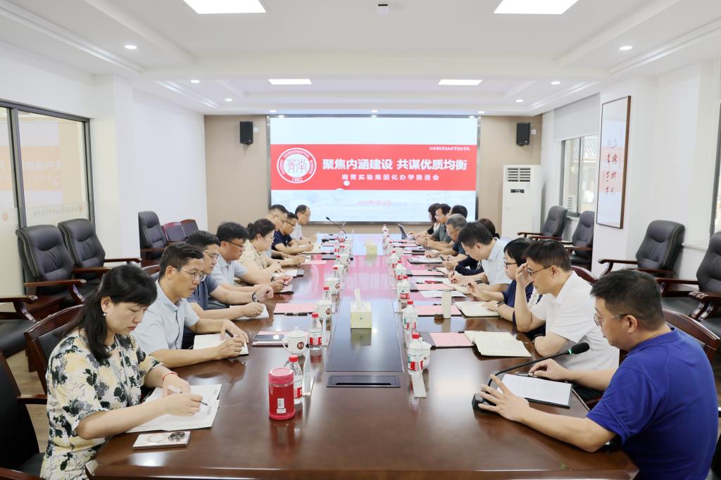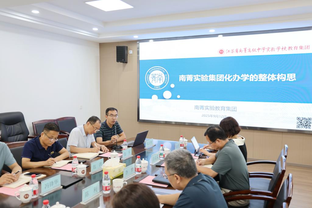 2025年9月12日,南菁实验教育集团各成员校校长齐聚于南菁实验学校行政楼会议室,举行2025-2026学年度集团化办学推进会。本次会议主题是“聚焦内涵建设 共谋优质均衡 ”。江阴市教育局副局长邹凤翔,基教科科长朱炎林,教师发展中心副主任陈利,初中研训室主任王俊蓉全程参加会议,精准把脉指导。