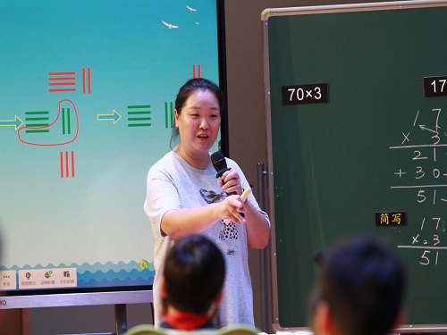 江阴市城中实验小学陈祎老师执教的《两、三位数乘一位数》一课,以问题情境引出新知,进而以“小方块摆一摆”、“方格纸圈一圈”和“纸笔算一算”三种不同层次的探索工具,引导学生多元表征,逐步从直观操作走向抽象思维。整节课重视算法和算理交融,引导学生在乘法竖式的自主探索中,经历多元联系、自主创造、自主发现、自主迁移的学习过程。