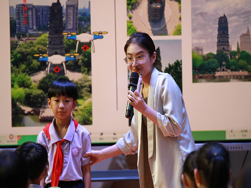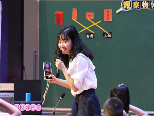 江阴市澄江中心沈沛琳老师执教的《观察物体》一课,课始以江阴地方资源“兴国塔”为情境,结合无人机的拍摄视角,触发学生对不同观察位置的思考。随后以“拍一拍”、“看一看”两大任务,依托平板工具引导学生在活动中经历观察思考、积极验证、深入辨析的思考过程,逐步掌握和积累从不同方向观察的基本方法和基本经验。