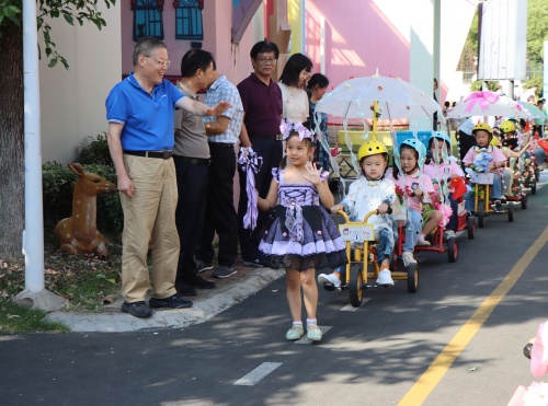 活动伊始,华士实验小学杨印健老师就《指向儿童创造力发展的游戏化科创教室行动研究》课题作了系统、详实的结题汇报,全面梳理与展示了该课题的研究历程与丰硕成果。紧接着,长泾实验幼儿园教科室主任丁淼立足本园实践,就《陶行知生活教育视域下幼儿园“大玩家”园本课程的开发研究》课题进行中期汇报,清晰勾勒出课题研究的行进轨迹与阶段收获。随后,与会人员移步户外,实地观摩了“大玩家”游戏现场。孩子们在自主、开放、充满生活气息的游戏情境中尽情探索:迷你街道上,“小交警”正认真执勤;农家乐里,传统点心制作有模有样;涂鸦区变身创意挥洒的天地;更有热闹的花车巡游队伍,载着孩子们的欢声笑语穿梭园所……孩子们投入的状态、迸发的创意与良好的互动,生动展现了“生活即教育”的实践魅力,赢得了观摩专家的频频赞许。丰富的实践场景为理论提升提供了生动样本,在专家论证环节,专家组对两项课题的研究价值与实践成果给予高度评价,认为课题研究立足实、成效显,充分体现了陶行知教育思想的当代价值。专家指出,两项课题起点高、内容丰,构建了系统而拓展性强的研究框架;华士小学的课题在创造性培养方面机制成熟,长幼的“大玩家”课程则真正让幼儿作为生活者在游戏中健康生长,是贴近儿童的真教育。同时,专家组进一步强调,课题研究须与时俱进,不断立足培养完整而独特的生命个体,实现从“阶段性成果”向“可持续发展”的深化。最后,金娇园长代表课题组对专家的指导给予了真挚感谢,她说道,本次指导不是终点,而是课题深化实践的新起点。长幼将更加坚定地将陶行知“生活教育”核心思想贯穿于课程开发始终,在“做”中求真知,在“玩”中育真人。