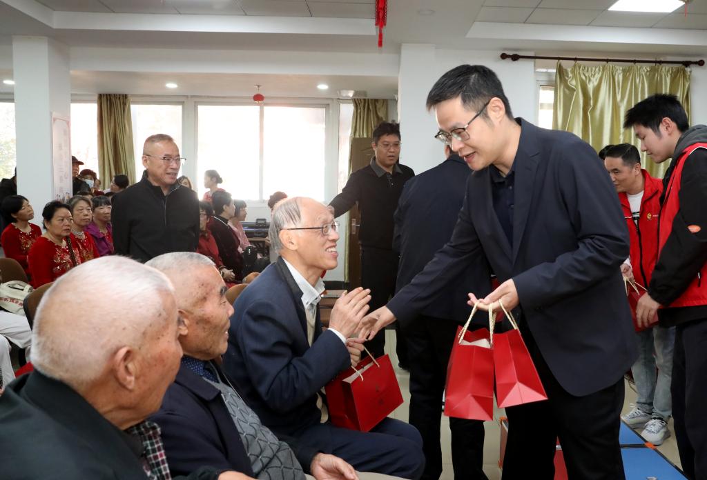 活动中,与会领导和嘉宾不仅现场为老年人分发重阳糕,还为敬老院内行动不便的老人们送上党委、政府的关怀和祝福。