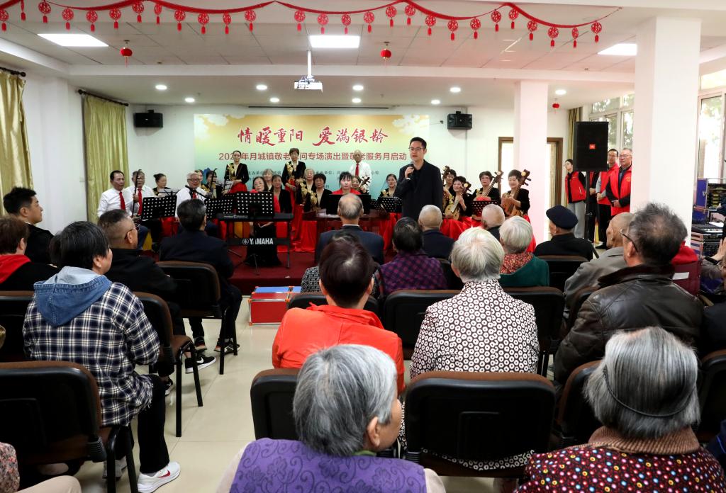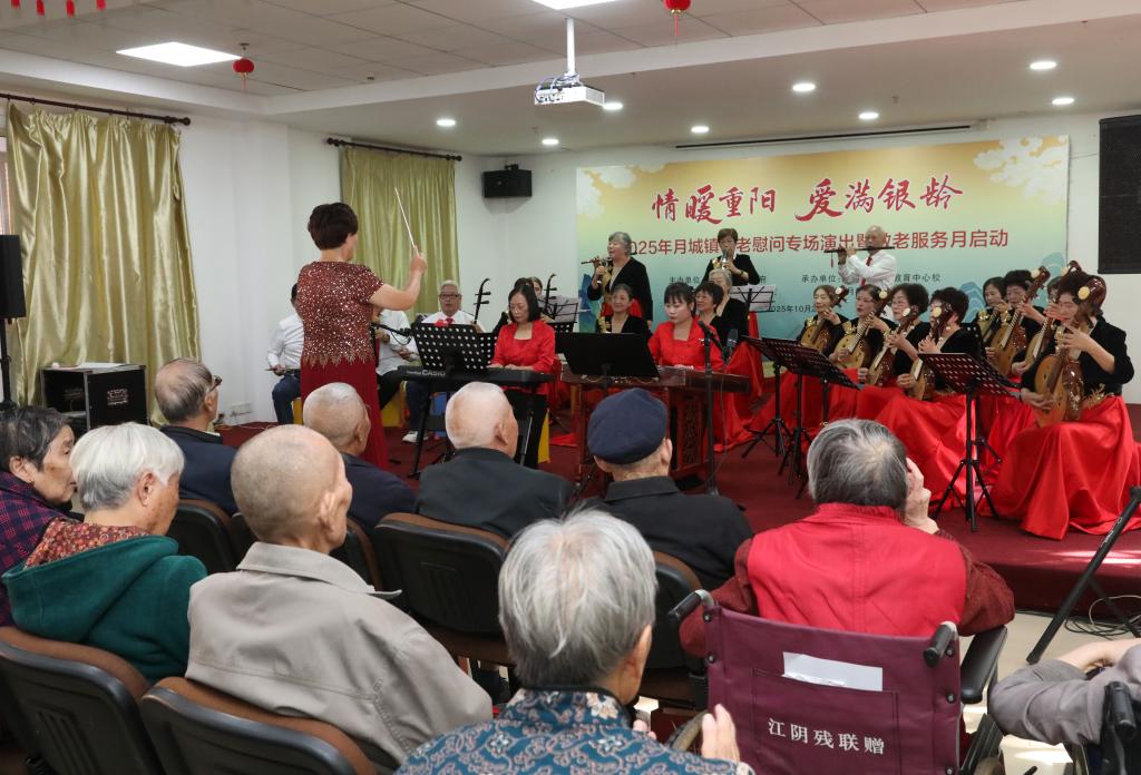 10月29日上午,“情暖重阳 爱满银龄”——2025年月城镇敬老慰问专场演出暨敬老月活动在月城金夕延年养老院温情启幕。月城镇党委副书记、镇长赵华,月城镇人民政府副镇长殷倩珠,月城公益坊会长严明,以及月城镇民政部门、老年协会、成教中心、江阴老年大学等相关部门(单位)、志愿者参加活动,为全镇老年人送上了节日慰问与祝福关怀。
