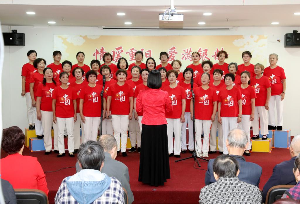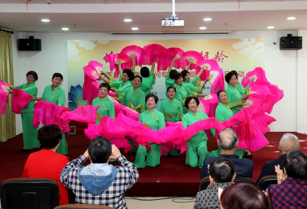 月城成教老年学校、江阴市老年大学百余名学员上台表演:《梨花颂》《花儿与少年》乐器合奏开场,《江南水乡》《铁血丹心》竹笛齐奏,舞蹈、独唱、锡剧清唱、大合唱等各个节目轮番上场。台上演出精彩纷呈、热闹非凡,台下掌声与笑声不断,现场氛围温馨而热烈。