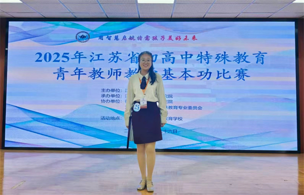 近日,2025年江苏省初高中特殊教育青年教师教学基本功比赛在徐州圆满落幕。我市特殊教育中心校蒋彦涵老师在全省60名参赛选手(其中听障教育组26名)中脱颖而出,凭借扎实表现荣获听障教育组一等奖。
