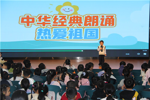 活动中,孩子们身着华丽的服装,个个精神抖擞,眼神中闪烁着对梦想的渴望与期待。本次展示活动分为三个环节进行:第一环节是个性自我介绍,孩子们围绕自己的兴趣爱好、梦想等进行讲述,充分展示了独特的个人风采与主持热情;第二环节是主持技能展示,孩子们从天气预报、新闻播报、晚会主持、少儿节目等电视节目类型进行展示,他们优秀的现场把控能力和内容组织能力得到了阵阵掌声;第三环节是中华经典诵读,孩子们用清脆悦耳的声音充分展示了自己对经典诗词的理解,此刻每一位孩子都成为了中华优秀传统文化的传播者。舞台上,孩子们个个淡定从容、落落大方,自信满满的他们犹如闪耀的星辰,每一次举手投足,每一个表情变化,无不透露着他们对舞台的热爱与对梦想的追求。