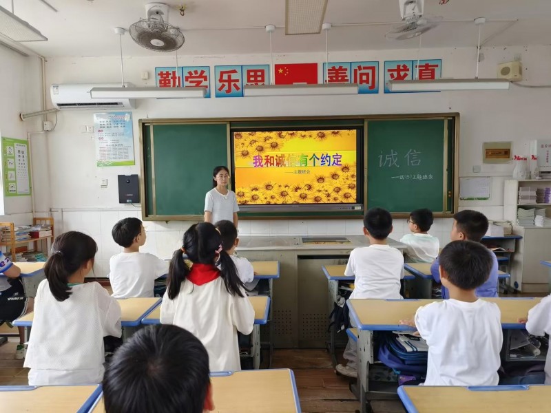 除了静态的书画展览,动态的体验活动同样精彩。全校各班举行了“诚信”主题班会。班会上,老师们通过案例分析、情景剧表演、诚信小故事讲述等方式,深入浅出地解析了诚信的重要性。班会的高潮是“诚信小承诺”仪式,全体学生庄重地许下属于自己的诚信诺言,并纷纷表示将互相监督,共同践行,让承诺化为实际行动。