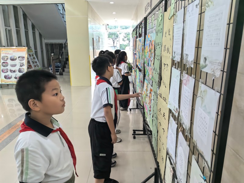 9月28日起,评选出的优秀书画作品在学校走廊集中展出,课余时间,各班在老师组织下有序参观。同学们驻足于一幅幅精美的书画前,或细细品读名言警句,或相互讨论画中故事,在艺术的熏陶中加深了对诚信美德的认同。