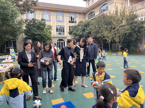 专家组一行在戴海燕园长的全程陪同下,对第三实幼进行实地视导。他们现场查看室内外游戏场域创建样态,驻足观察教师教育行为与幼儿深度学习情况,同时逐项核查设施设备维护状态、安全防护体系建设及卫生保健制度执行情况。对我园因地制宜利用空间,规范精细的园所管理机制,彰显儿童立场的教育理念给予了高度评价。