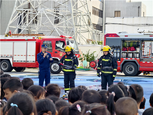 最受孩子们欢迎的还是消防车进校园啦!祝塘消防救援队的消防员叔叔们为孩子们带来了震撼的消防车灭火演练。当高压水枪打开,水柱瞬间喷涌而出,赢得了孩子们的阵阵惊呼和掌声。孩子们“零距离”接触消防器材,试穿消防服,佩戴帅气的消防头盔,亲身体验“小小消防员”的职责与光荣。这次生动的体验活动,不仅满足了孩子们的好奇心,更让他们感受到了消防员工作的艰辛,敬佩之情油然而生。