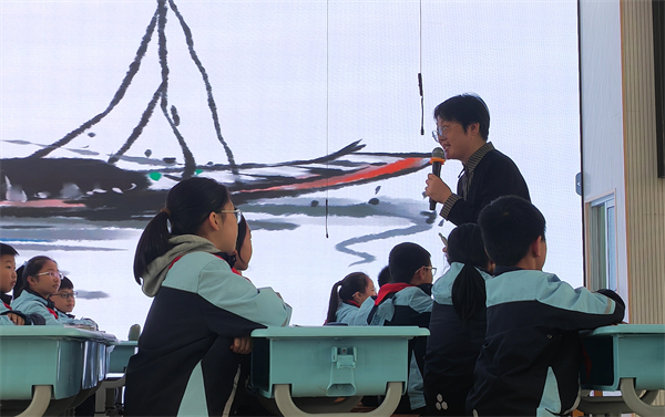 无锡市学科带头人、晨光实小袁祎老师带来示范课五年级《父爱之舟》。袁老师以任务驱动为导向,带领学生在文本中探寻父爱的细腻表达,其教学设计巧妙,课堂氛围活跃,展现了深厚的教学功底。昆山开发区中华园小学副校长、江苏省特级教师、正高级教师孙庆博老师执教六年级《月光曲》。孙老师以“辨析词语”“读懂对话”“学习联想”三个核心任务串联教学,引导学生在实践中掌握联想的写作技巧。其清晰的教学思路、堪称经典的示范朗读、激励性极强的评价语以及幽默风趣的教学智慧,尽显名师风采,引发听课教师强烈共鸣。