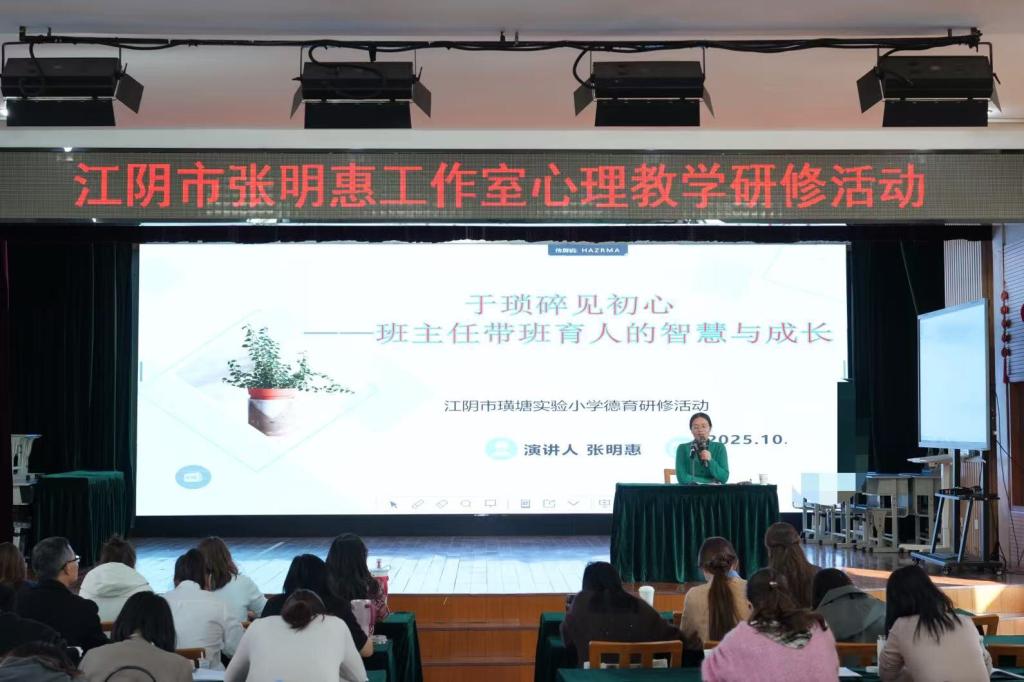 为全面提升学生心理健康素养,赋能教师育人能力,近日,江阴市张明惠名师工作室联合江阴市璜塘实验小学成功举办“心育赋能 德育同行”主题研讨活动。工作室成员、青阳片德育骨干教师及璜塘实验小学全体班主任、心理教师80余人参与活动。
