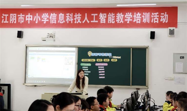 为响应人工智能教育普及的时代号召,持续深化全市中小学人工智能教学实践,10月29日,江阴市中小学信息科技人工智能教学培训活动在江阴临港科创实验学校顺利举行。全市近50名中小学信息科技教师参加此次活动。