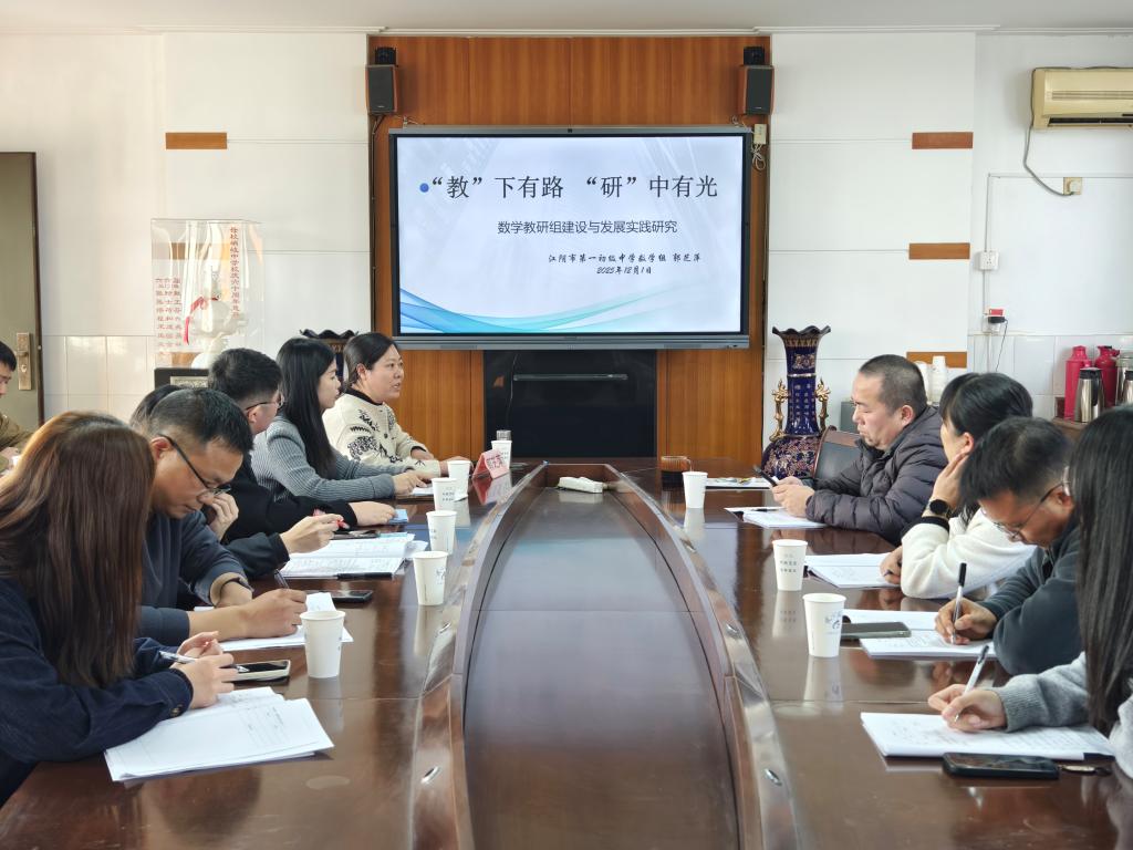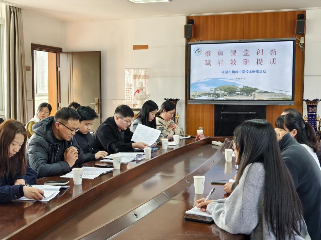 为深入推进“三力”课堂3.0版的实践探索,深化课堂教学改革,提升教研实效,12月1日下午,峭岐中学邀请江阴市第一初级中学数学学科组一行4人来校指导,开展以“聚焦课堂创新,赋能教研提质” 为主题的外聘专家培训暨校本研修活动。活动以外聘专家优质课展示、成长分享与专题讲座为载体,共探教学教研融合新路径。峭岐中学数学组全体教师、各学科组长及 50 周岁以下行政人员参加了本次活动。
