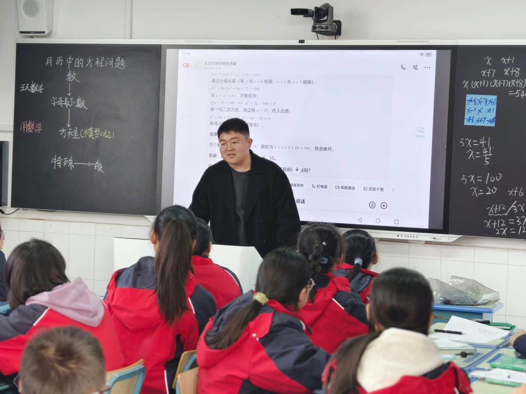 活动首先由江阴市“三力”课堂教学大比武一等奖获得者、江阴市第一初级中学戴兴民、梅玉芬两位老师,分别同步展示数学课《月历中的方程问题》。课堂上,两位教师紧扣 “三力” 课堂理念,通过生活化情境导入、互动式问题设计,引导学生从月历数字规律中探索方程应用,生动展现了优质课堂的教学设计逻辑与重难点突破策略。两位老师扎实的教学功底、巧妙的教学设计、灵活的教学方法、高效的师生互动,展现了“三力”课堂的实践成果,让峭岐中学听课教师直观感受了创新教学的魅力,为日常教学提供了可借鉴的实践样本。