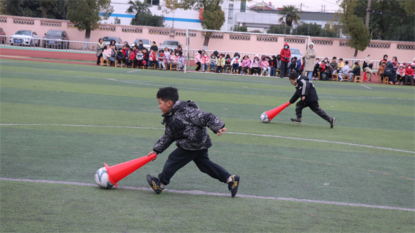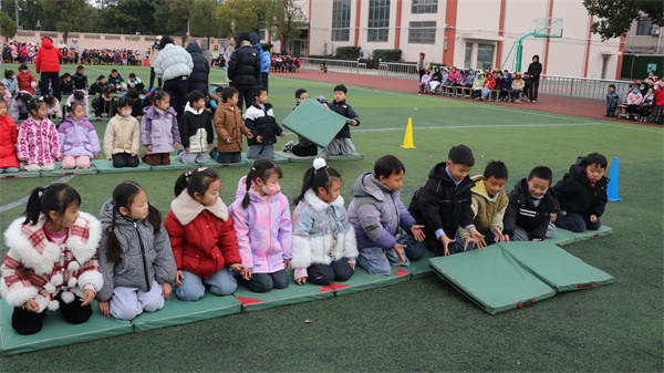 本次运动会以“丰富校园体育文化,增强学生体质,培养团结协作、顽强拼搏精神”为主旨,分时段、分年级有序展开。上午为四、五、六年级学生同场竞技;下午则是一、二、三年级小朋友展现活泼童真的欢乐时光。六大特色项目各具风采:低年级的“蚂蚁搬家”项目中,小选手们跪姿协作、传递体操垫,默契配合穿越障碍;“赶小猪接力跑”中,孩子们手执标志桶灵巧推动彩球,闪转腾挪间洋溢天真童趣;“羽毛球投准”则考验眼力与手感,羽毛球划出弧线,稳稳飞向目标框。