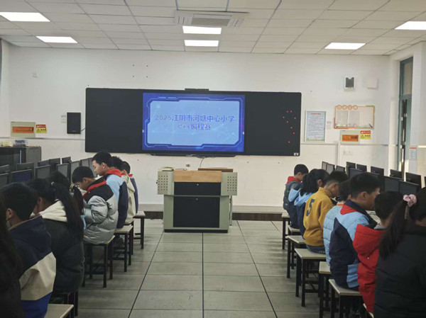 高年级的计算机编程比赛现场,五、六年级的“小程序员”们沉着冷静,指尖在键盘上快速敲击,通过编写代码实现创意功能,用编程思维解决实际问题,尽显科技少年的风采。