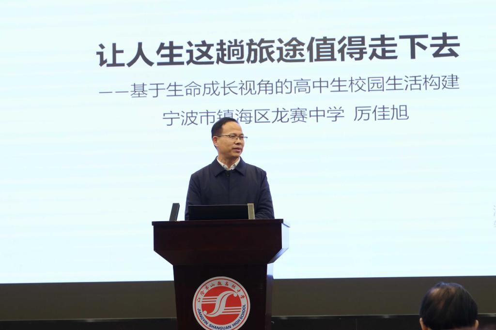 20日,年会先对优质展示课教师颁发证书,随后召开学术论坛。论坛上,胡恒美书记详细介绍了山观高中青春期教育“三维协同”模式的构建与实施情况,并坦诚交流实践中的发展困惑;宁波市龙赛中学党总支书记厉家旭分享了该校青春期教育“五个一”实践探索经验。另有六位一线教师结合教学实例,分享了青春期学生情感需求解读、师生高效沟通技巧等实操经验。最后,中国陶行知研究会青春期教育专业委员会理事长陶林作专题报告,深入阐释科学性教育理念,倡导理性看待青春期恋爱现象,引导学生树立多元发展观念。