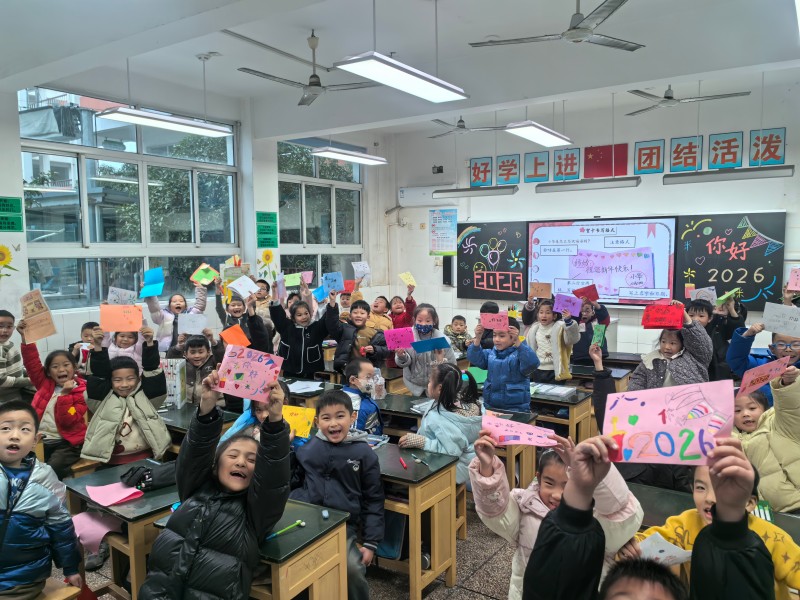 有的班级是一片专注而温馨的景象。在老师的指导下,同学们认真学习制作新年贺卡,用彩纸、画笔、贴纸等材料,精心设计属于自己的新年祝福。一张张贺卡上,画满了可爱的图案,写满了真诚的祝愿——有的送给父母,有的送给老师,有的送给好朋友。一年级的王同学一边装饰贺卡一边说:“我要把这张贺卡送给妈妈,祝她新年快乐!”
