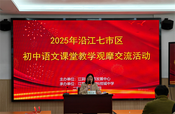 12月16日,沿江七市区初中语文课堂教学观摩交流活动在江阴市滨江科技城中学顺利开展。活动由江阴市教师发展中心主办,以“数字技术与语文教学深度融合”为主线,通过三大分会场联动、九节创新课例展示,生动呈现了“人智共生”理念下的课堂实践与区域教研成果。