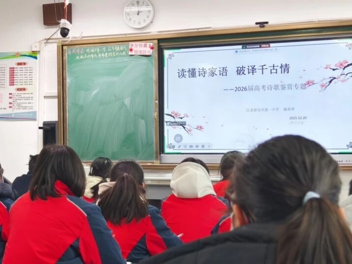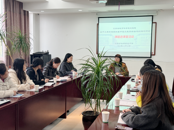 为持续推进“基于大概念理解的高中语文教学新结构的课例研究”省级课题建设,精准把握新高考改革脉搏,不断优化教学结构,提升高三语文复习实效,12月20日下午,澄中语文组特邀江苏省宜兴第一中学语文名师杨英华来校指导,组织了一场深度与温度并存的高三语文专题教研活动。活动涵盖示范课与专题讲座两个环节,语文组教师积极参与,共享这场思维与智慧的盛宴。