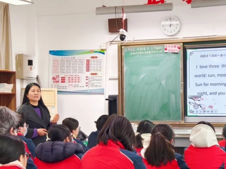 示范课上,杨老师以“诗家语”破译为线索,引导学生走进诗歌的深层语境。她从一词多义、语序倒装、意象组合等角度入手,结合高考真题,层层剖析诗歌解读的密码。课堂中,学生时而凝神思考,时而踊跃发言,在杨老师亲切而精准地点拨下,逐渐触摸到古典诗歌的情感脉络与艺术匠心。