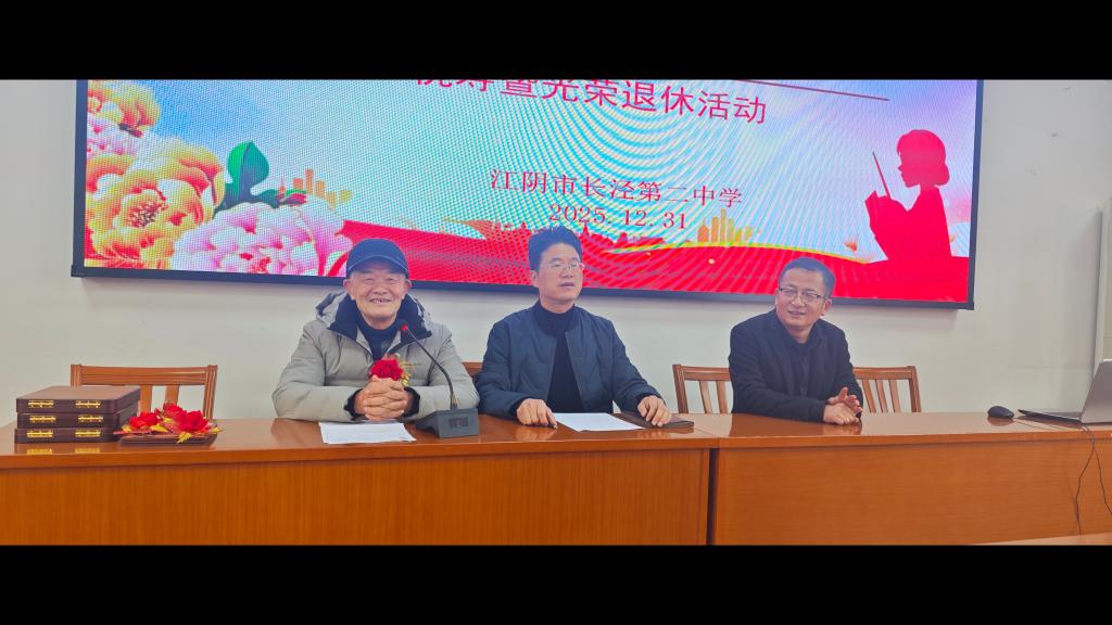 2025年12月31日上午,江阴市长泾第二中学的校园内情意浓浓、笑语盈堂。学校为光荣退休的教师及适逢寿辰的老前辈们,隆重举行了“祝寿暨荣休活动”。校领导与退休教师欢聚一堂,共同致敬无悔奉献,祝福安康晚年,见证了一场温馨而庄重的温情盛会。