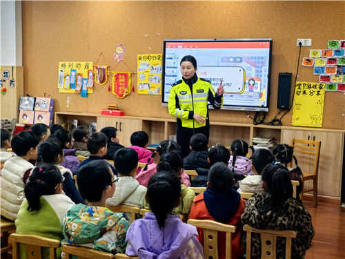 11月27日,祝塘交警队的民警们走进该园,引导幼儿增强安全意识。“小朋友们,过马路时要走哪里呀?”丁惠颖警官以图文并茂的课件和生动有趣的动画为载体,将“红灯停、绿灯行”“一盔一带”等安全规则讲得浅显易懂。交警还逐一展示了指挥棒、警示灯、对讲机、酒精测试仪、执法记录仪等装备,“这个警示灯亮起时,能提醒周围车辆注意避让”“酒精测试仪是用来检查司机有没有酒后开车的”,生动的讲解引发孩子们的阵阵好奇,举手互动格外踊跃。在互动体验中,孩子们不仅丰富了交通安全知识,更让他们真切感受到了交警工作的严谨与责任。